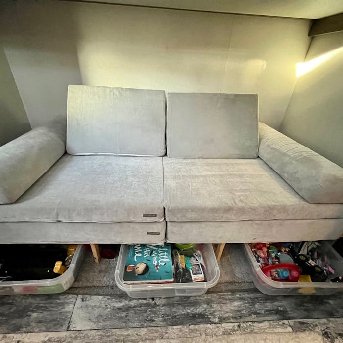 - Toy storage- we used the manufacturer’s storage concept under the master bed (which we use every inch of) and added the same thing to our bunkhouse to build storage for our kids’ toys.