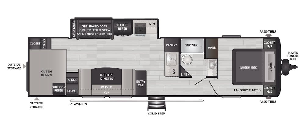 At under 7,500 pounds and under 37 feet with an MSRP less than $40,000 — you won't find anything else in this price range like the 32TQS! Find a dealer near you and check out this clever dinette in person.