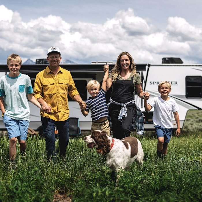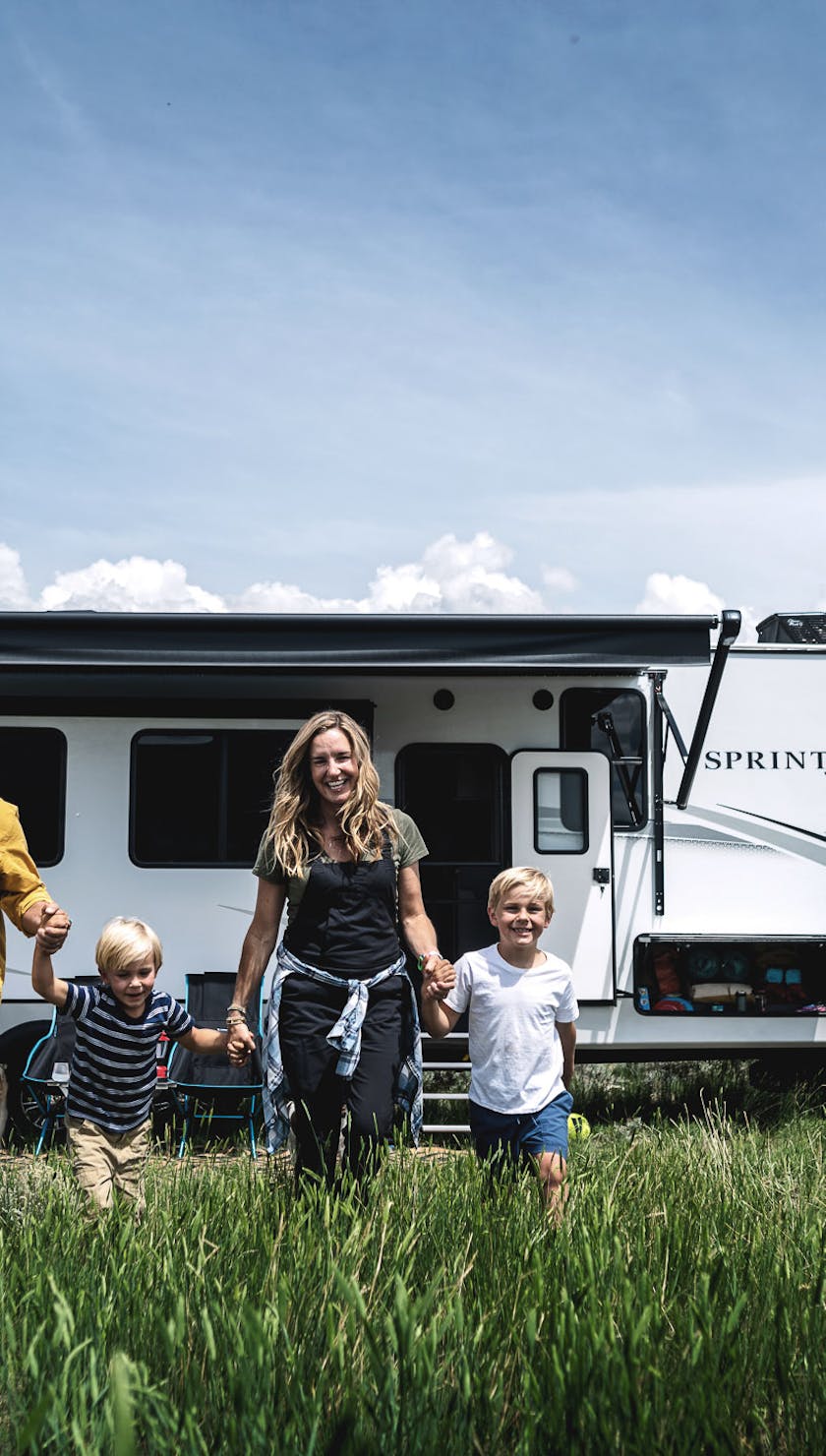 In 2023, Sprinter unveiled the spacious 3900DBL, catering to large families. For 2024, the brand introduced another option, the Sprinter 3810QBS. This floorplan features four double beds in a bunkhouse layout. This innovative design includes a massive wardrobe, TV prep, and a dedicated half bath accessible from the outside. With flip-up bottom bunks and a 100” wide body, storing oversized gear is hassle-free. With privacy being important for those with large families, this bunkhouse capitalizes on feeling spacious with the ability to be closed off. The living area offers versatile seating options and a built-in entertainment center, while the kitchen boasts ample storage and counter space. The primary suite includes a decent-sized shower, linen closet, queen-size bed, and washer/dryer prep, ensuring comfort and convenience