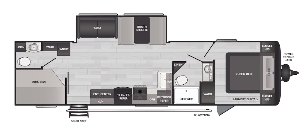 Springdale travel trailer bunkhouses are available in every configuration imaginable. You will love the unique features from solar power options to campsite windows, extra storage in unexpected places, and effortless camping thanks to power stabilizers, tongue jacks, and awnings. These features, and so much more, allow Springdale to affordably deliver the best camping experience.