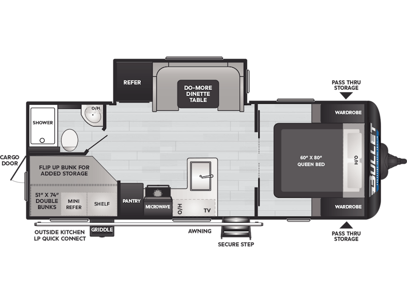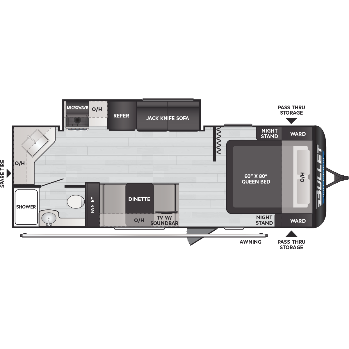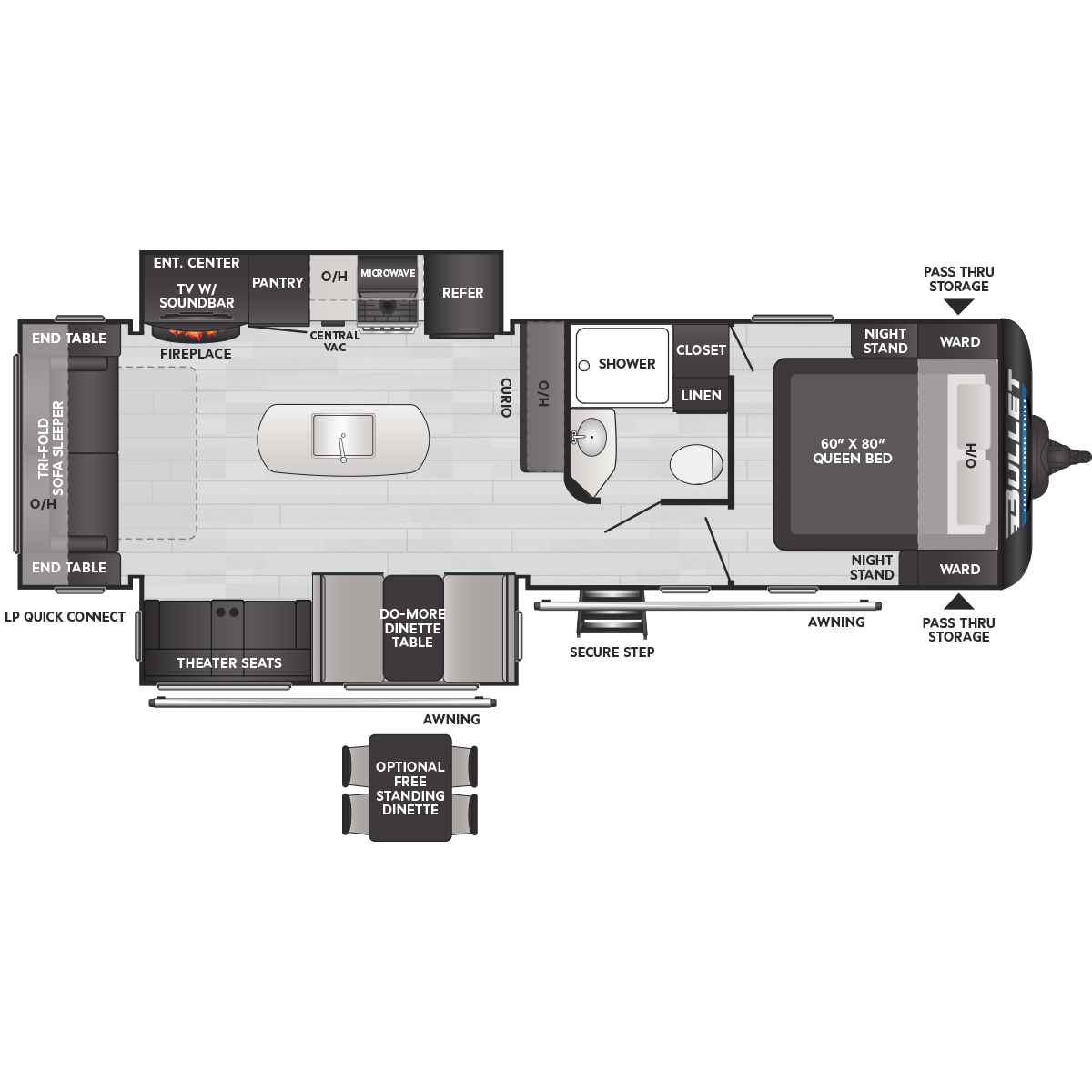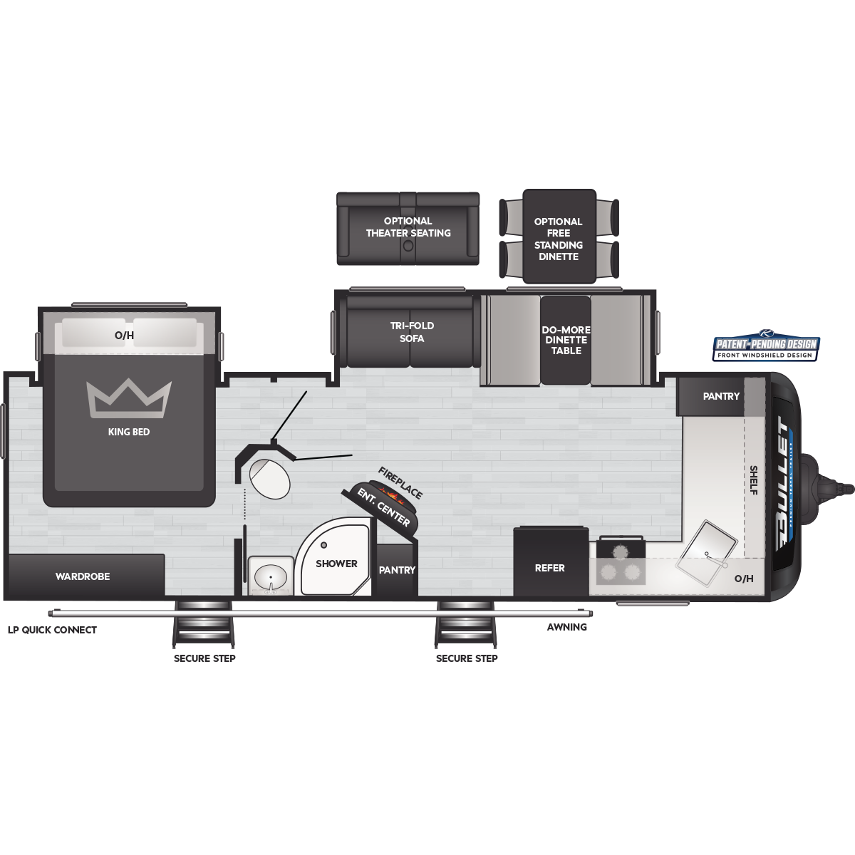 Come to Keystone RV Booth 2 with Camping World to see all of these floorplans! Discover a new era of RVing with Bullet and Bullet Crossfire Ultra-Lite travel trailers – your gateway to towing confidence, unparalleled style, and versatility. Explore a world where towing becomes effortless, where sleek design merges seamlessly with functionality, and where your journey is only limited by your imagination. Bullet’s main product line offers distinctive bunkhouses and couples coaches with more features and amenities. Bullet Crossfire includes smaller, single- and dual-axle models designed with comfort and affordability in mind. Your path to unforgettable adventures starts here, with RVs that not only reflect your style but enhance every moment of your travel.