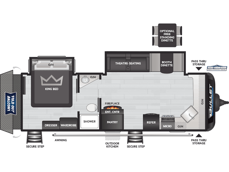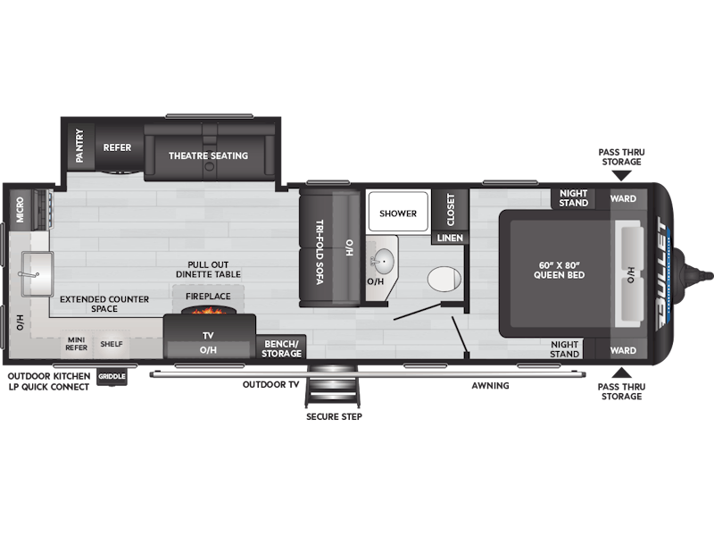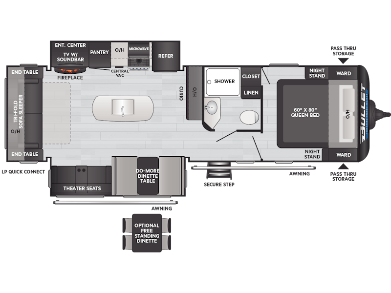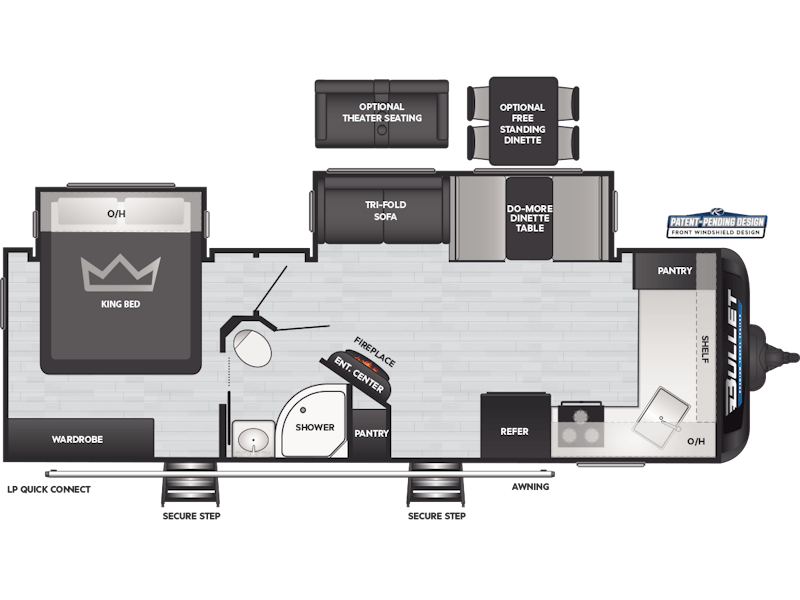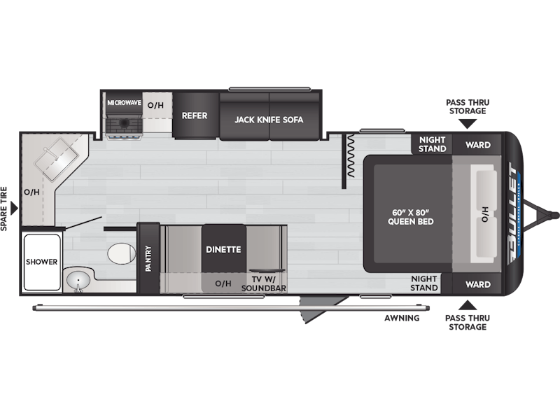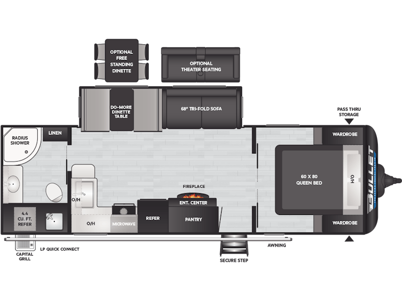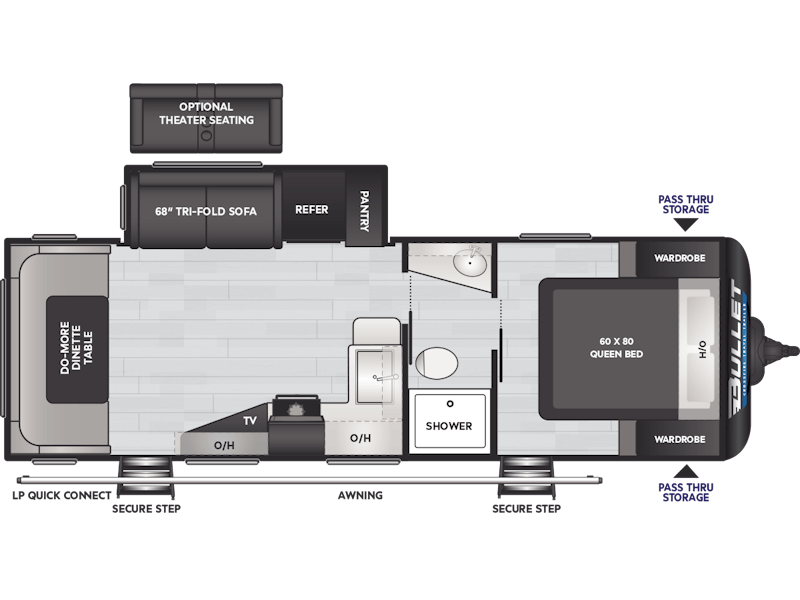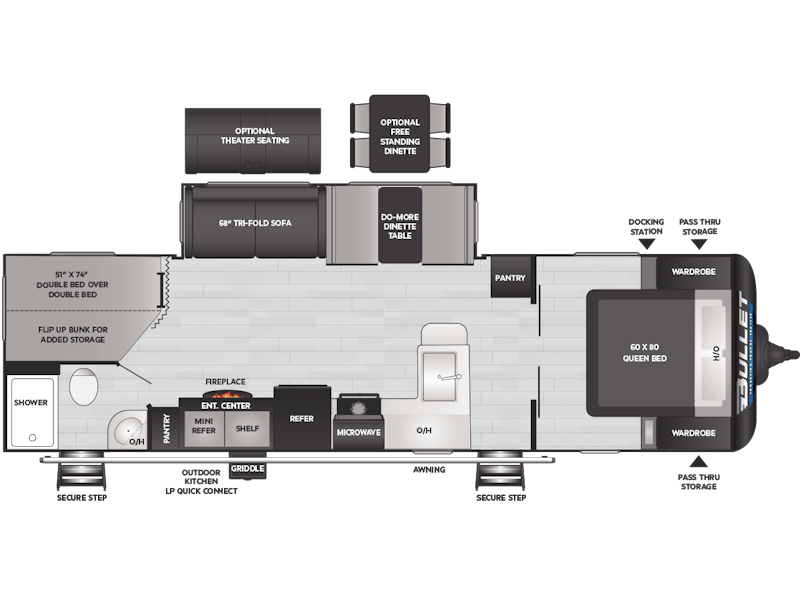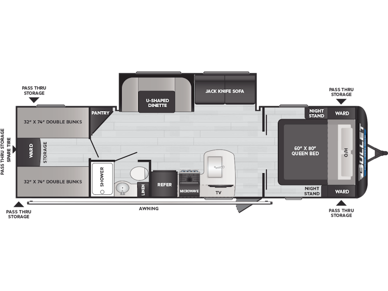 Come to Keystone RV Booth 2 with Camping World to see all of these floorplans! Discover a new era of RVing with Bullet and Bullet Crossfire Ultra-Lite travel trailers – your gateway to towing confidence, unparalleled style, and versatility. Explore a world where towing becomes effortless, where sleek design merges seamlessly with functionality, and where your journey is only limited by your imagination. Bullet’s main product line offers distinctive bunkhouses and couples coaches with more features and amenities. Bullet Crossfire includes smaller, single- and dual-axle models designed with comfort and affordability in mind. Your path to unforgettable adventures starts here, with RVs that not only reflect your style but enhance every moment of your travel.