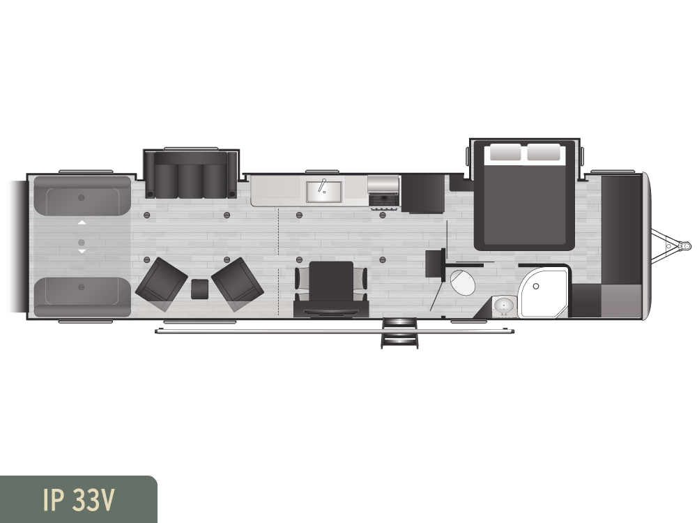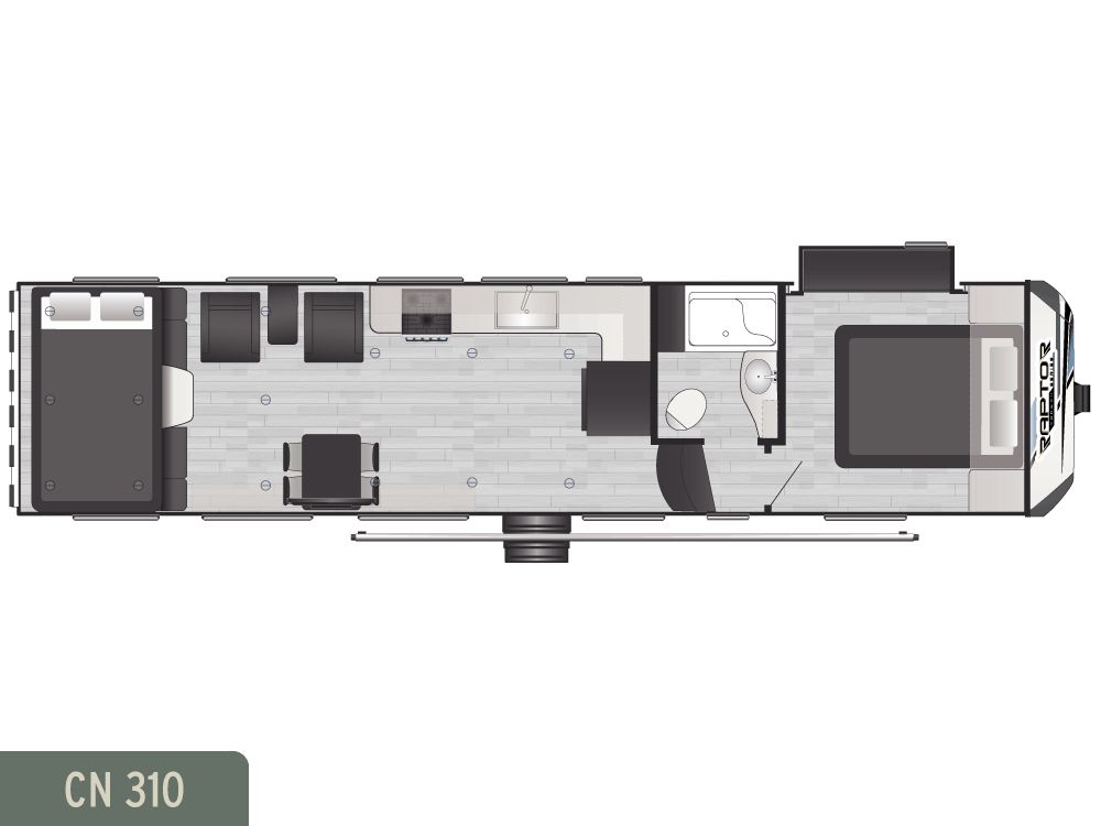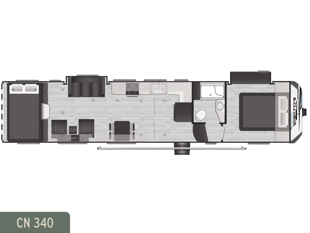 Toy hauler floorplans starting at 32'3" and 7,000 lbs.