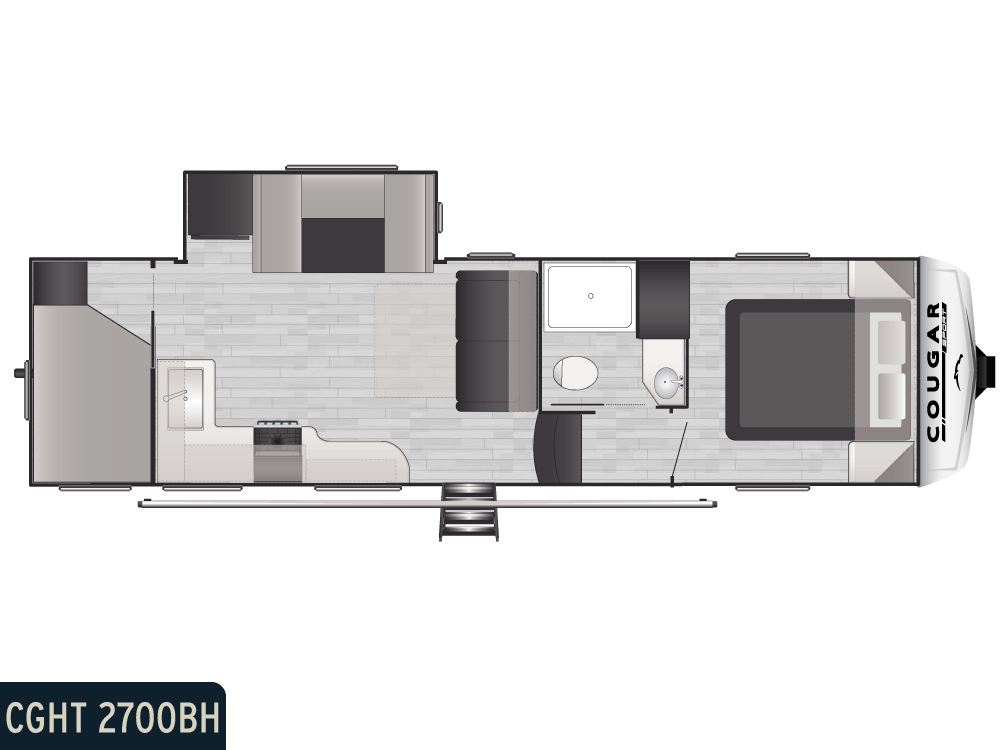 Cougar Sport is perfect for any active RVer who values Cougar's reputation and longevity. Safe and easy to tow, Cougar Sport serves up more than one might expect by preserving what customers love about the Cougar brand in a smaller, lighter package. Loaded with features including power stabilizer jacks, frameless windows & euro entry door, on-demand tankless hot water, SMART TV, and SolarFlex Discover 220 standard. Models start in the mid $40's.
