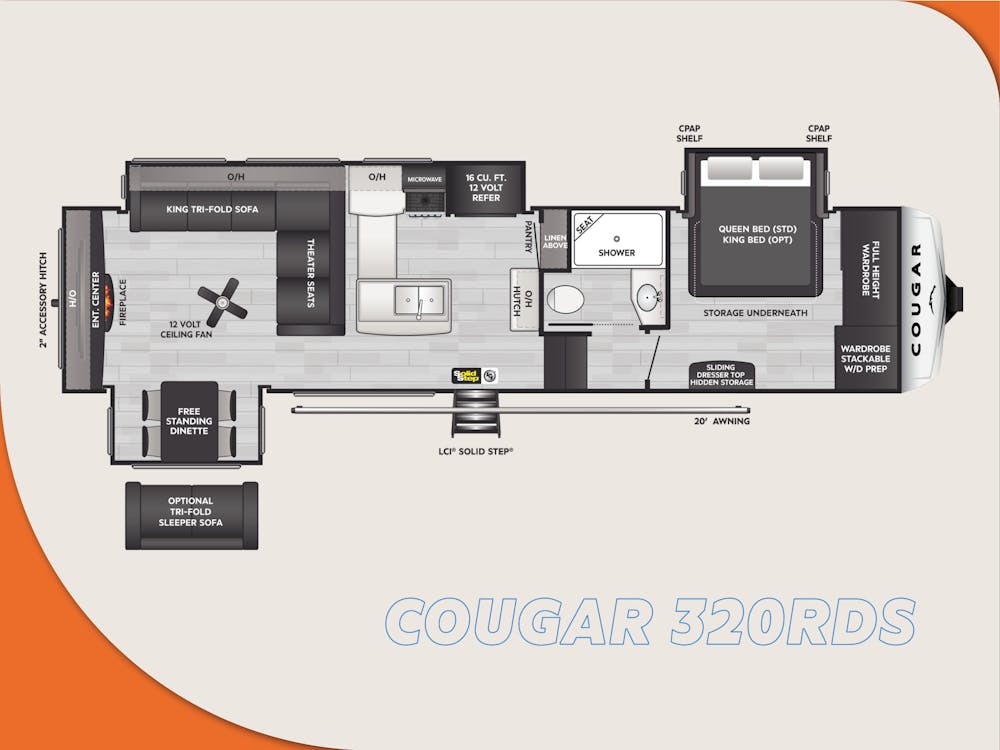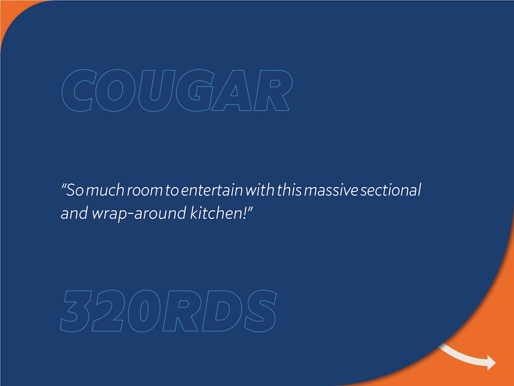 - Cougar Premium 320RDS - Large L-shaped sectional with open concept kitchen and front master with full front closet