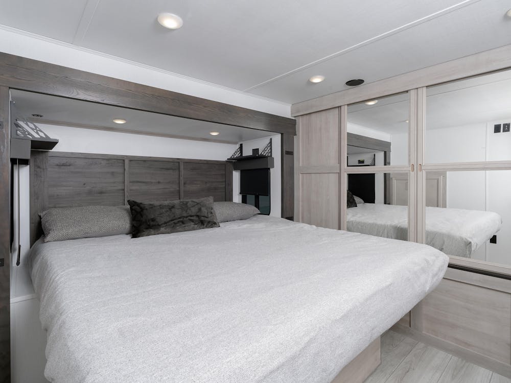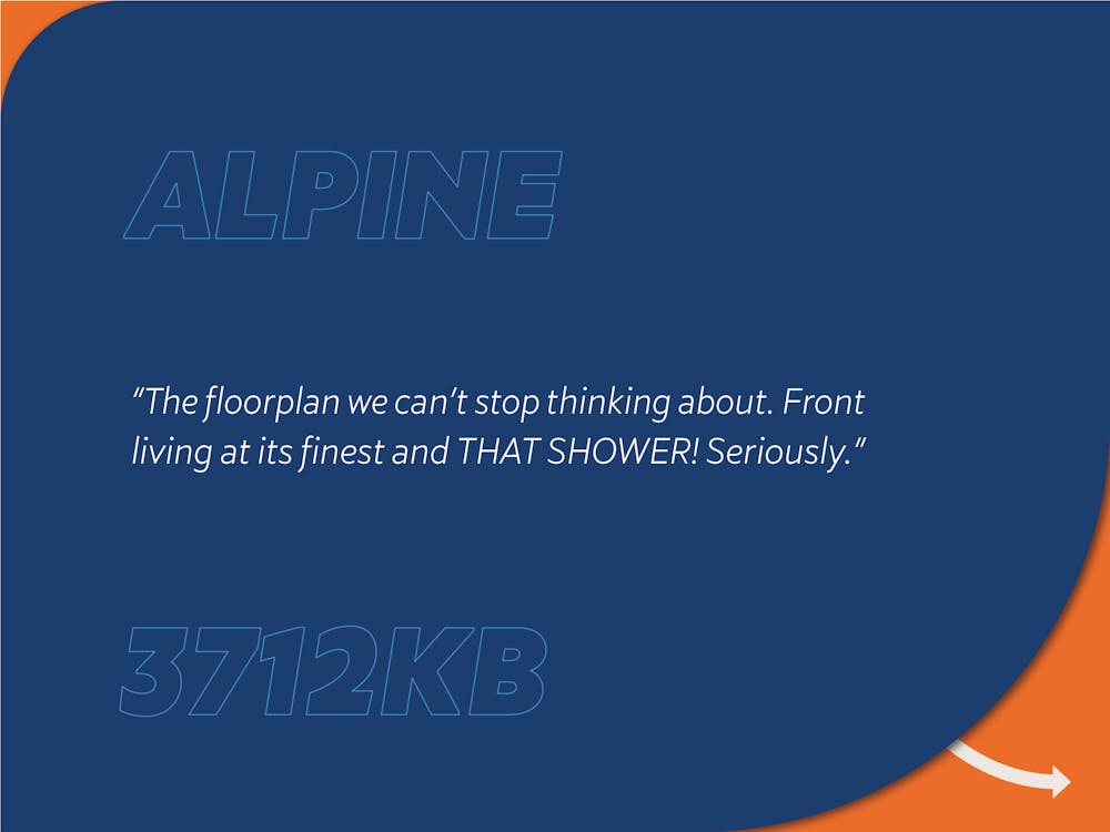 Both of these brands prioritize one-bedroom floorplans that emphasize comfort, ultimate convenience, and style. Both have tall, flat front caps which opens up the design options for the upper deck. Both are built on drop Z frames, offering massive storage in the front and rear. While both interiors are sophisticated, Montana's 2024 design is tonal and layered, Alpine punches it up with patterns and bespoke finishes. Alpine offers full body paint as a standalone option and includes many upgrades as standard equipment. Montana offers top-of-the-line options, including independent suspension, disc brakes, and our most advanced SolarFlex Outlast Extreme 1320i-L solar energy package.