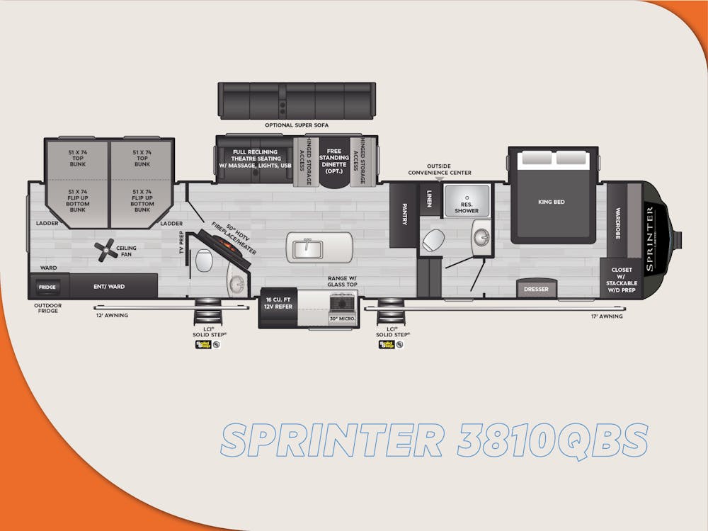 - Sprinter Limited 3810QBS - Two double over double bunks, king bed suite, and tons of storage throughout