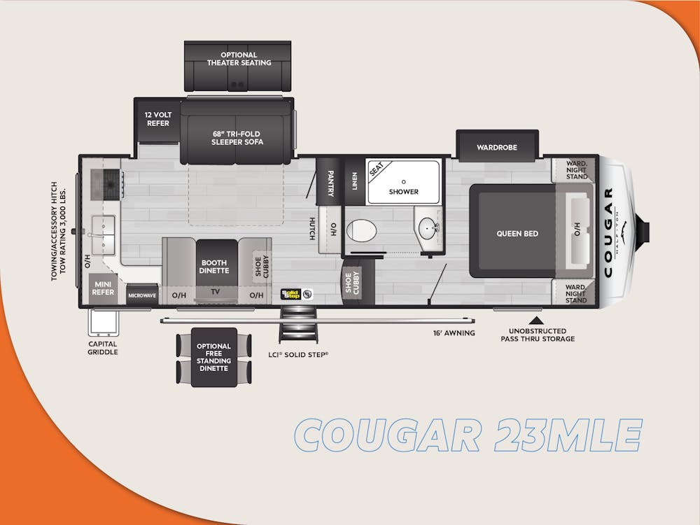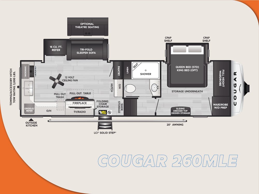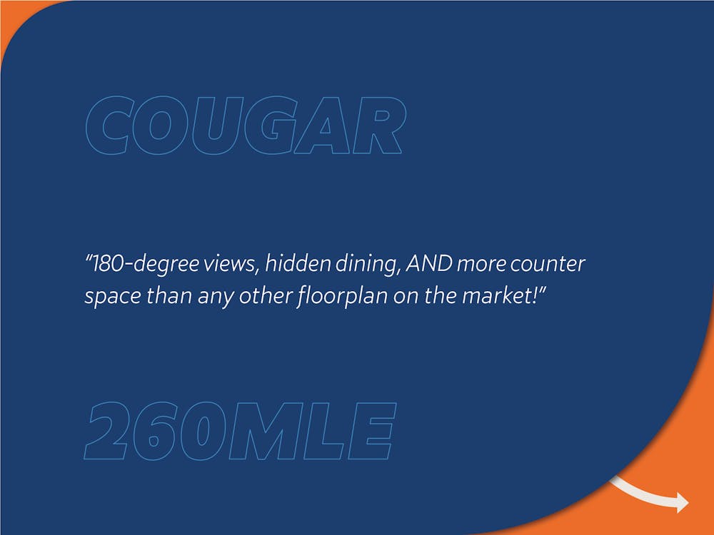 - Cougar Premium 260MLE - Innovative workspace and dining area, more counter space than any other floorplan on the market, and a full front closet