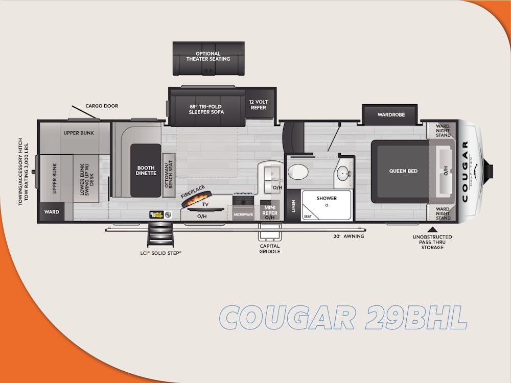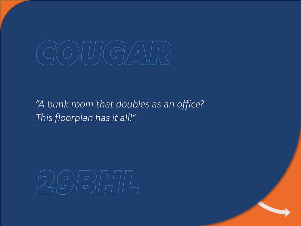 - Cougar Half-Ton 29BHL - Rear bunks with extra storage, comfortable and roomy booth dinette, and wardrobe slide