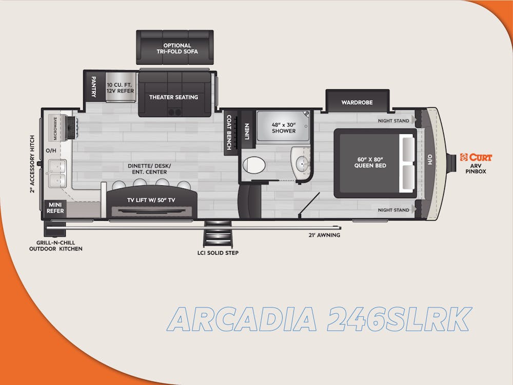 - Arcadia Super Lite 246SLRK - Multifunctional dining, large rear kitchen with tons of storage, and outdoor kitchen