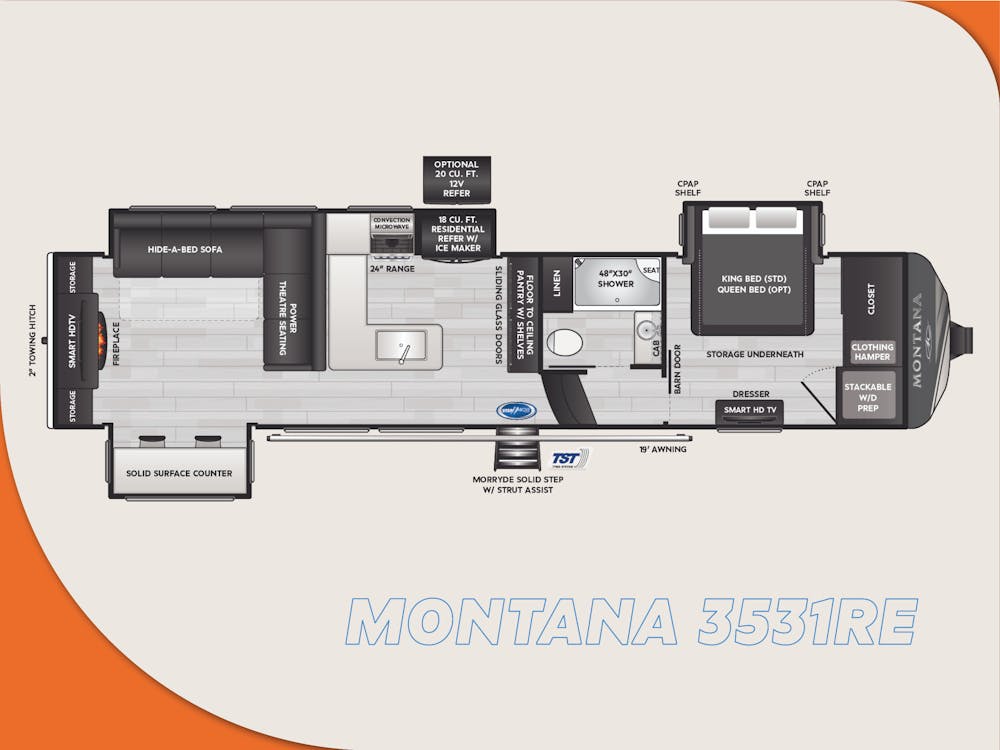 - Montana High Country 373RD - Large exterior storage, king bed suite, and dual bathroom sinks