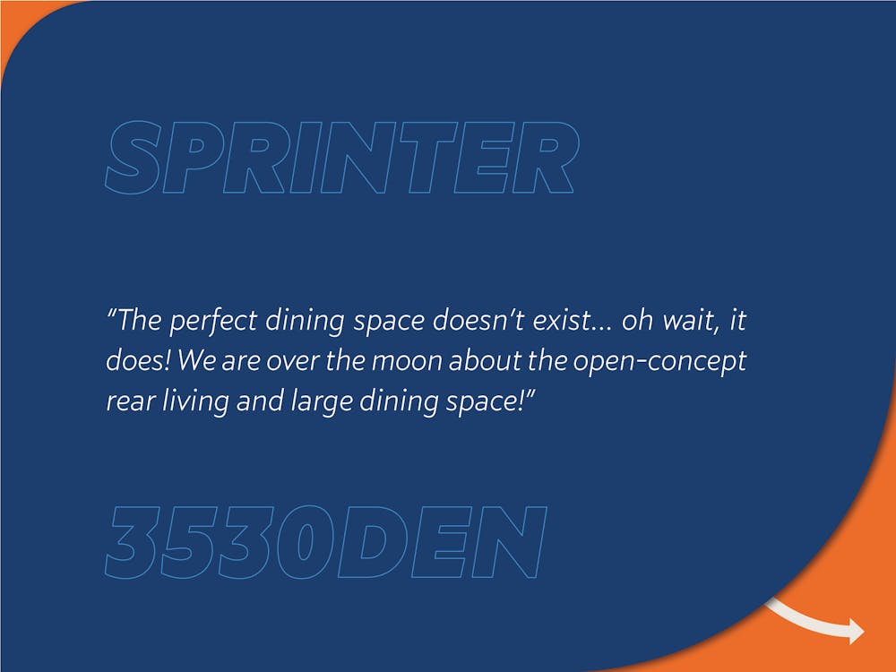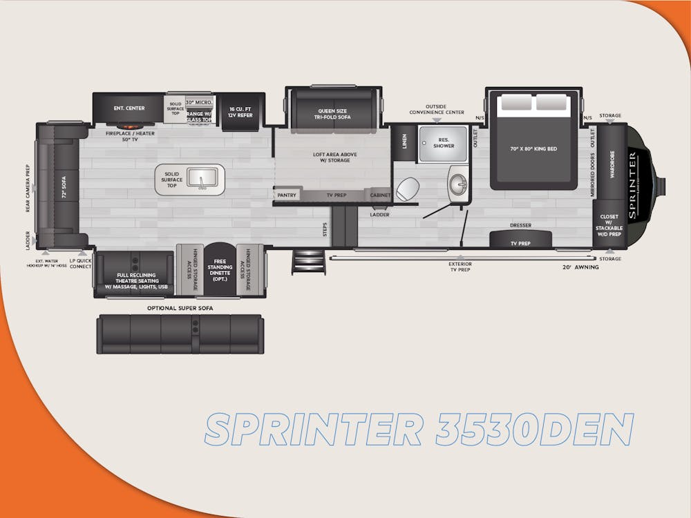 - Sprinter Limited 3530DEN - Rear living with full theater experience, large dinette, and king bed suite