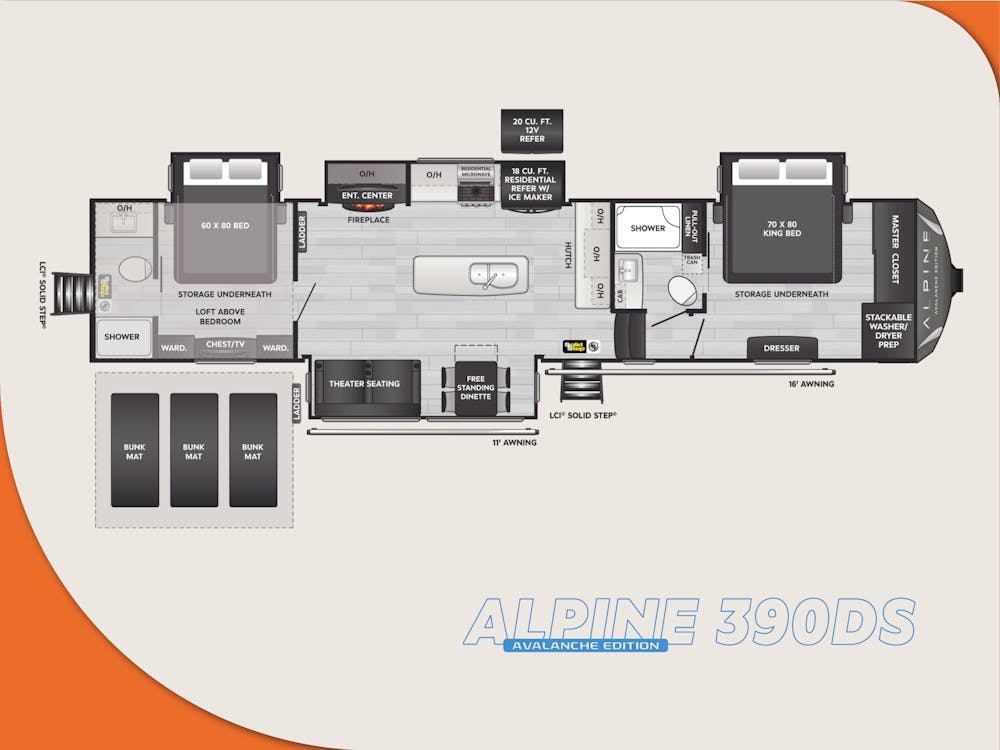- Alpine Avalanche Edition 390DS - Two bedrooms with two full baths plus loft space, great for families with older kids