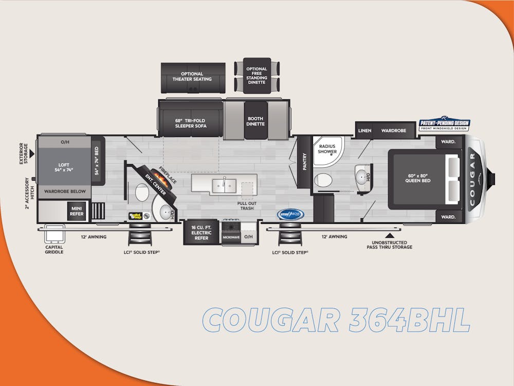 - Cougar Premium 364BHL - 2 bedrooms, a bath and a half, and a loft