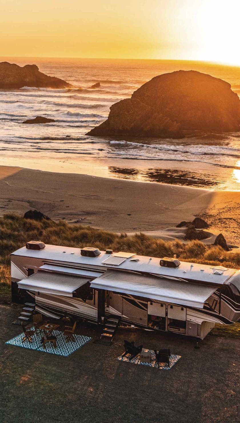 With two levels of living space, no RV offers more choices in floor plan configurations than a fifth wheel. Not only do you see the traditional front-bedroom model, but today you’ll find a head-spinning number of variations. Modern offerings include a front bath-front bedroom floor plan, front kitchen floor plan, living room floor plan, and floor plans with a rear den and garage, just to name a few.