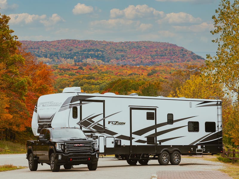 Founder of Girl Camper, Janine Pettit, and National Auto Expert, Mike Caudill walk you through a Fuzion 428. They point out key features that this floorplan has for both of their lifestyles. Janine points out the perks for a solo traveler while Mike focuses on traveling with the whole family!