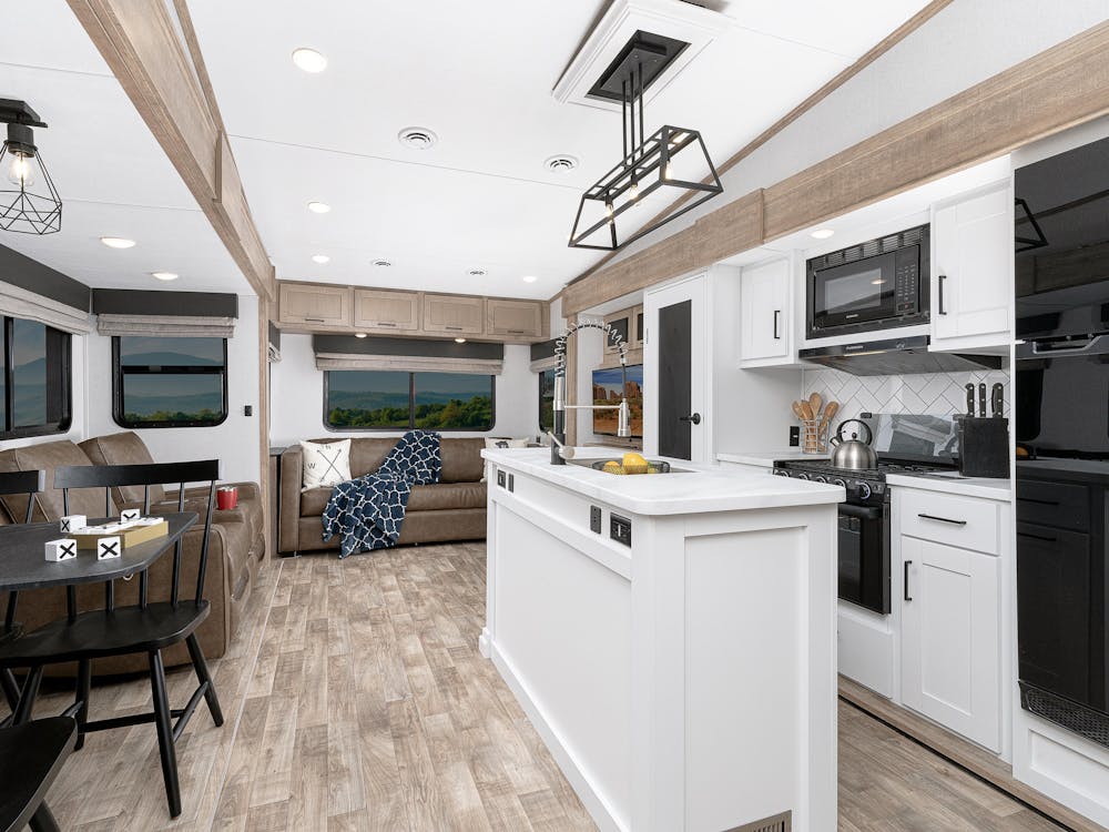 Arcadia has been a trendsetter in the RV space for it's innovation and contemporary style. The Arcadia 332SLRL is a brand new Super Lite floor plan with a rear living room, and can still sleep up to six people. Despite it being smaller and lighter than the rest of the Arcadia fifth wheel line, it still feels nice and open. With two awnings, you can still hang out outside whenever the weather permits.