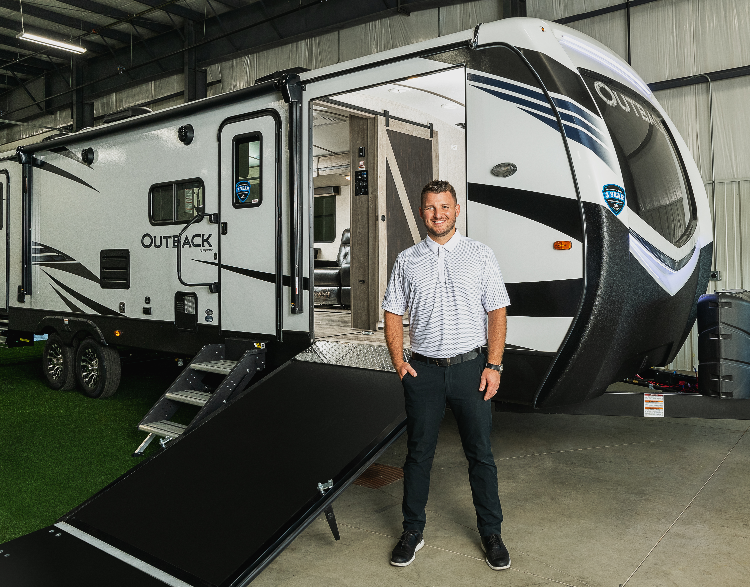 Connecting with nature is so important for everyone, particularly right now. Many campgrounds and parks are stepping up to become more accessible to campers in wheelchairs. With the new 342CG, we wanted to eliminate some of the common barriers to RVing," - Nick Ebenroth, Keystone Product Manager