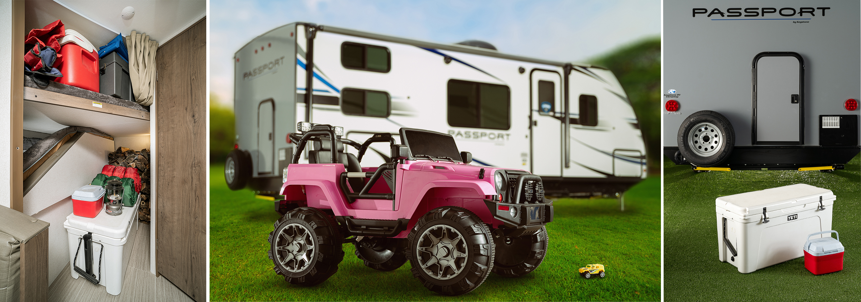 When given the choice between bring "some" or "all", Passport went all in - making sure you can bring everything you need for your camping fun. So you can take longer trips with more firewood, keep the kids occupied with the biggest, most fun toys, and everyone gets to bring their bike! Load it up without worry. Passport has all the room, without the extra weight. With plenty of sleeping and storage space, you'll have more fun and make more memories in your Passport.