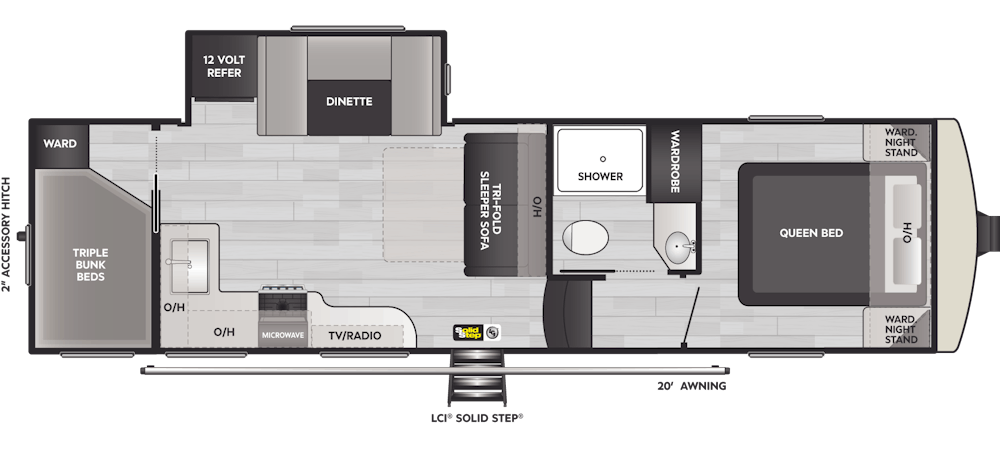 If a travel trailer is more your speed, Keystone's Hideout brand has unveiled a brand new model, the Hideout 32TQS that introduces an open double-over-double bunk with a clever (and safe) stair step entrance to the top bunk. A huge dinette converts into yet another sleeping space. We love this floorplan for how airy and open it feels with windows in all of the right places. It's easy to imagine the cabin full of kids laughing and chatting and they drift off to sleep.