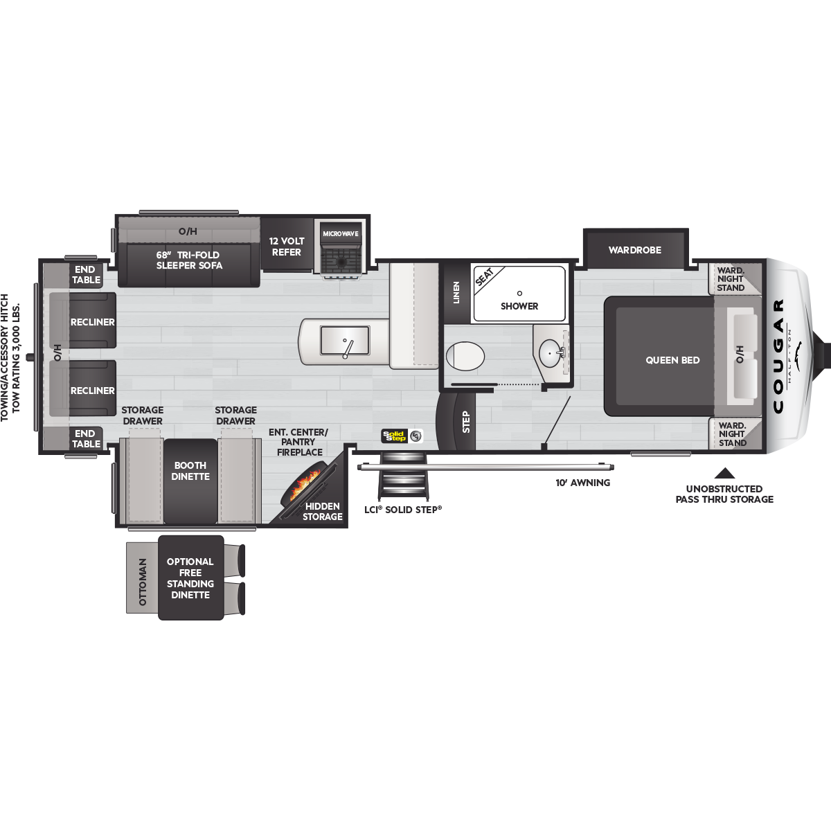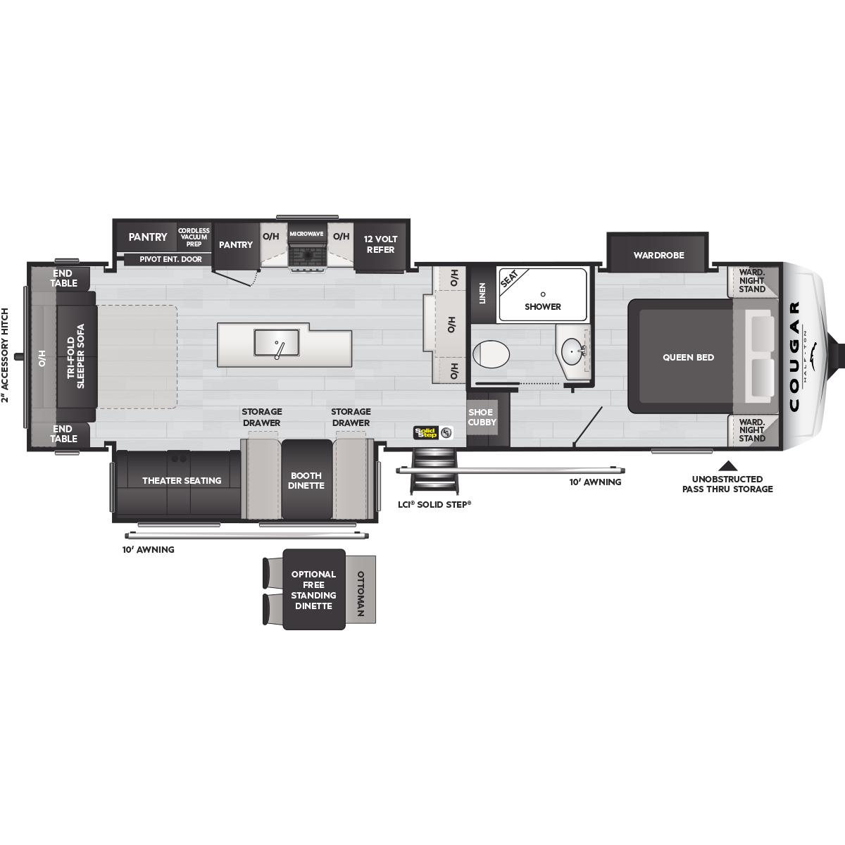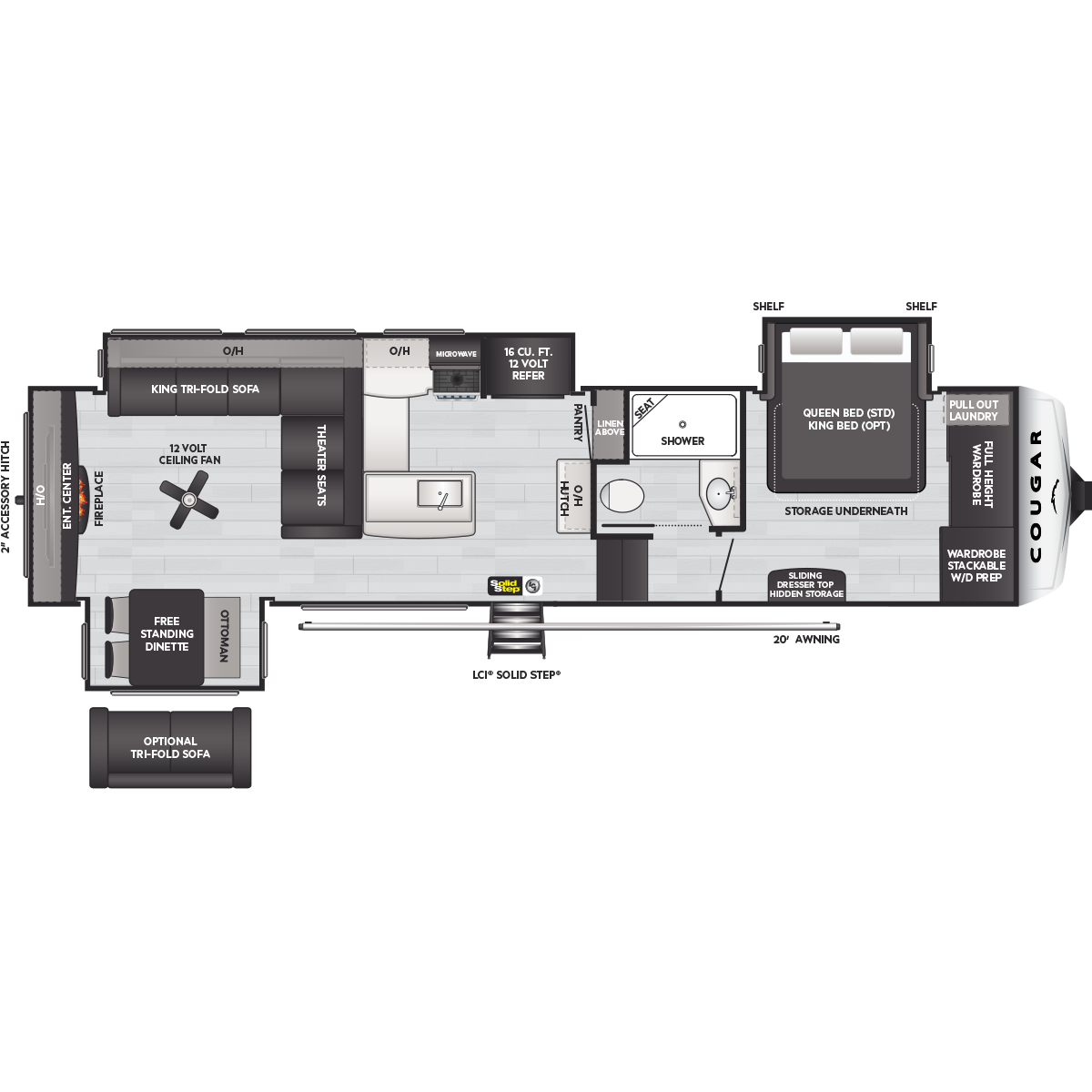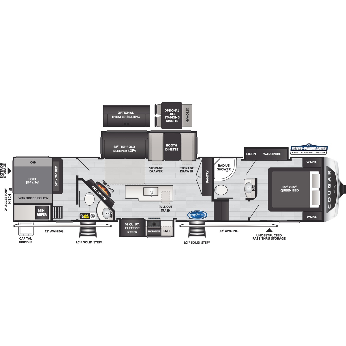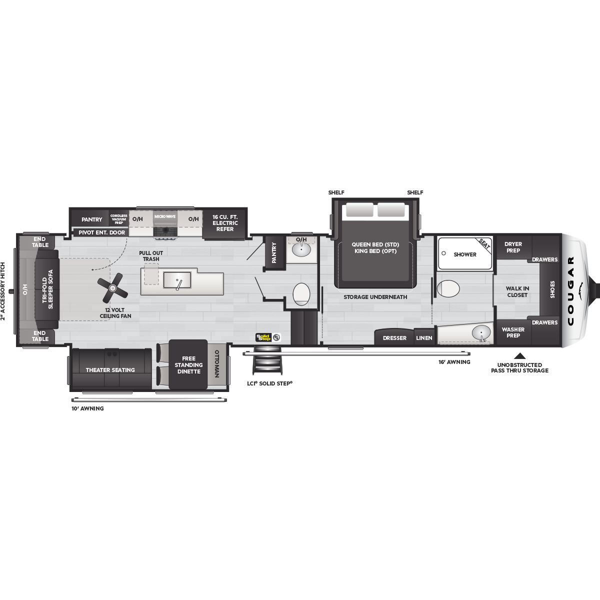 Come to Keystone RV Booth 2 with Camping World to see all of these floorplans! Step into the legacy of RVing with the iconic Keystone Cougar. Our collection invites you to join generations of campers who have trusted Cougar as their choice for extraordinary journeys. With a range that includes fifth wheels, half-ton fifth wheels, and travel trailers, Cougar stands as a leader in the industry, embodying not just a brand, but a tradition of innovation, style, and unforgettable experiences.
