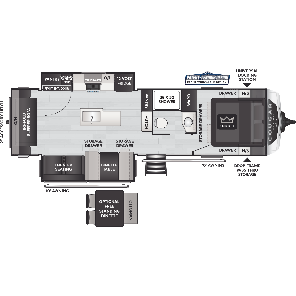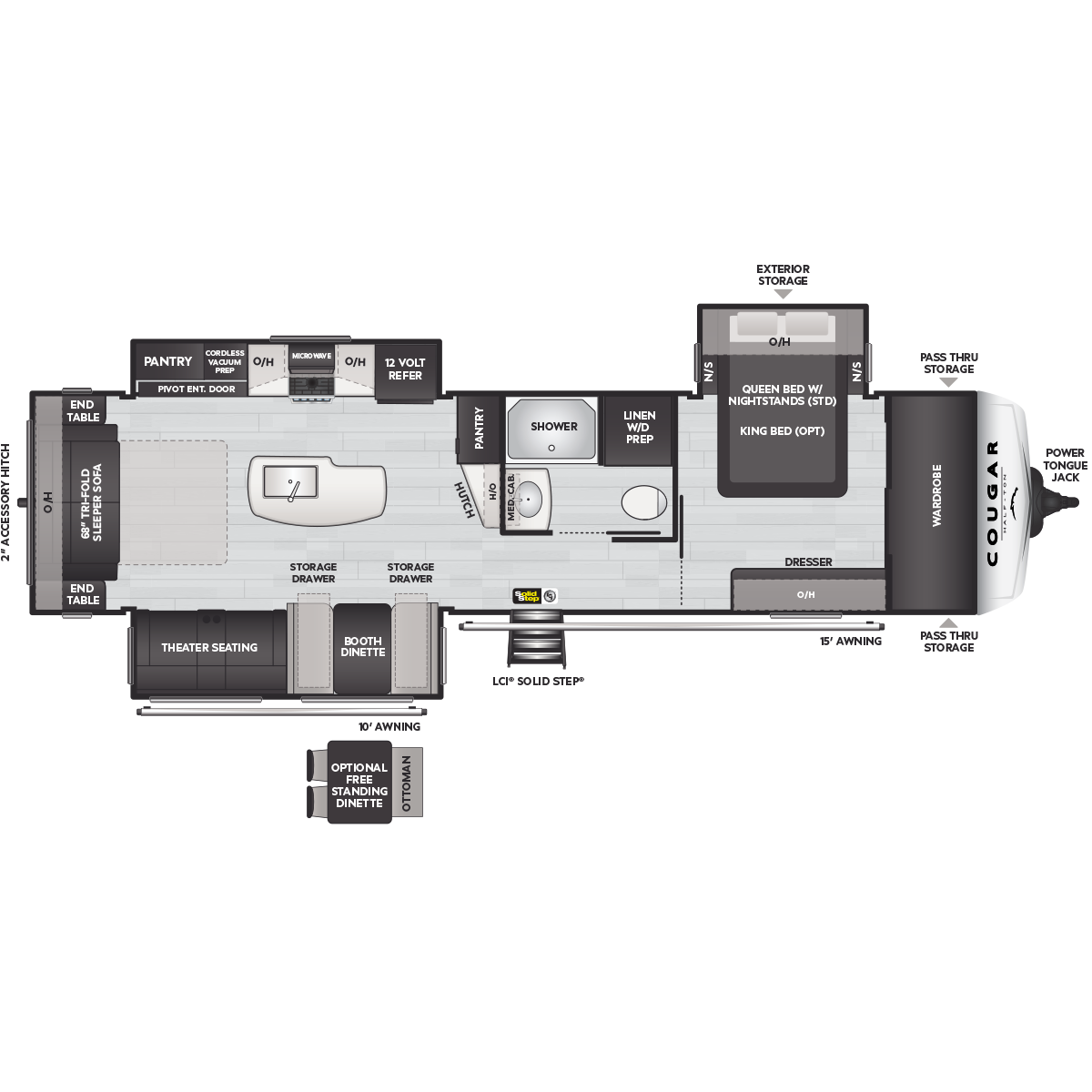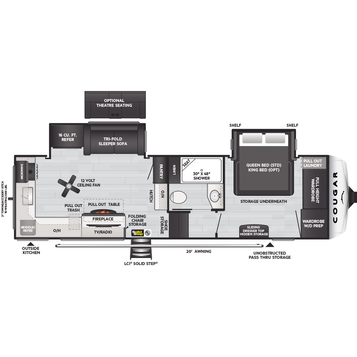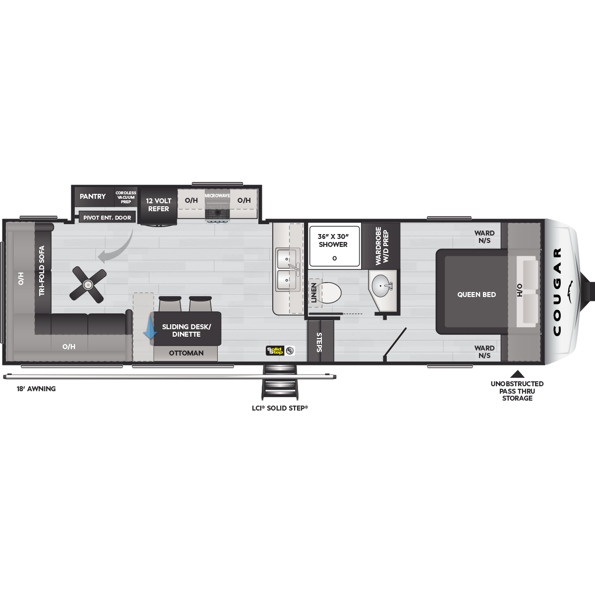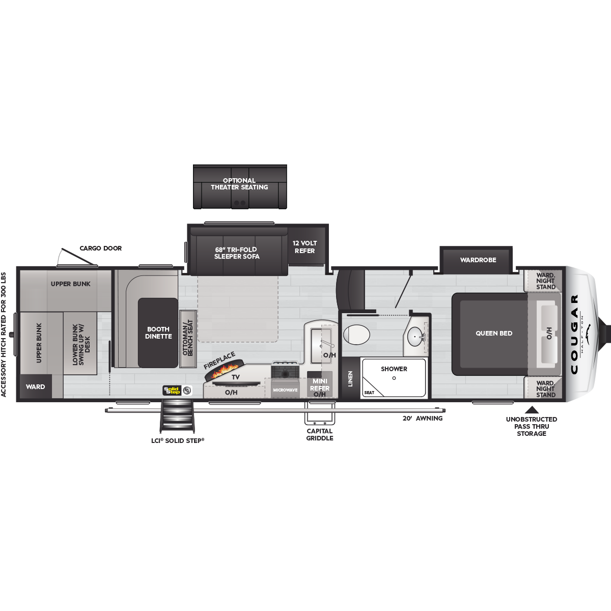 Come to Keystone RV Booth 2 with Camping World to see all of these floorplans! Step into the legacy of RVing with the iconic Keystone Cougar. Our collection invites you to join generations of campers who have trusted Cougar as their choice for extraordinary journeys. With a range that includes fifth wheels, half-ton fifth wheels, and travel trailers, Cougar stands as a leader in the industry, embodying not just a brand, but a tradition of innovation, style, and unforgettable experiences.