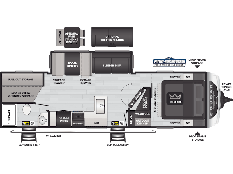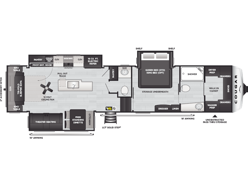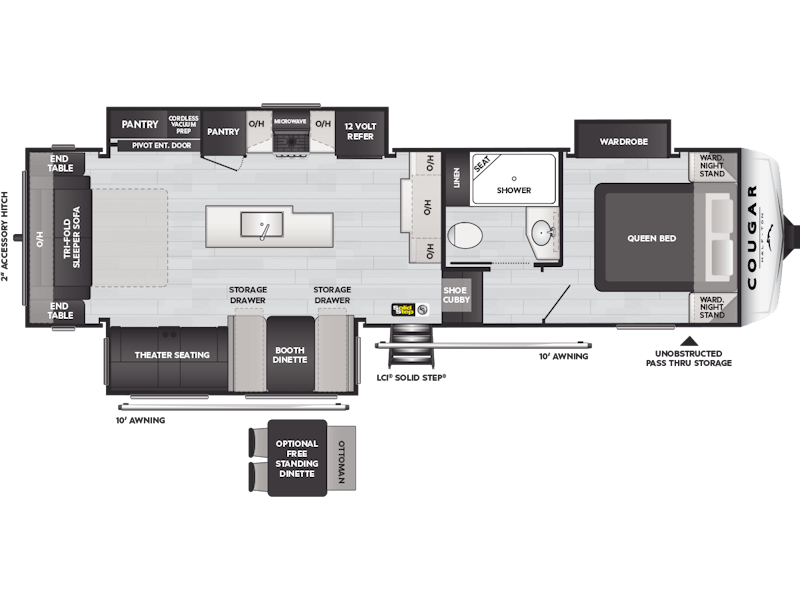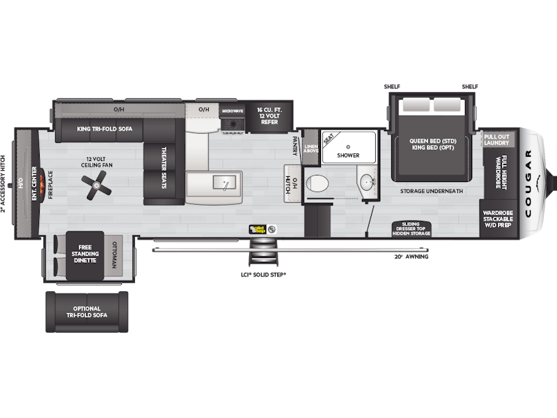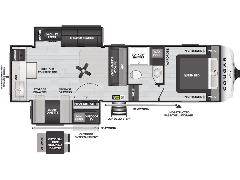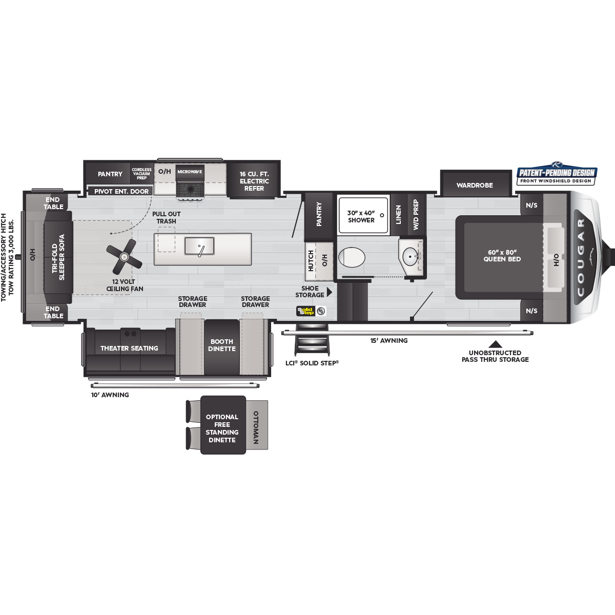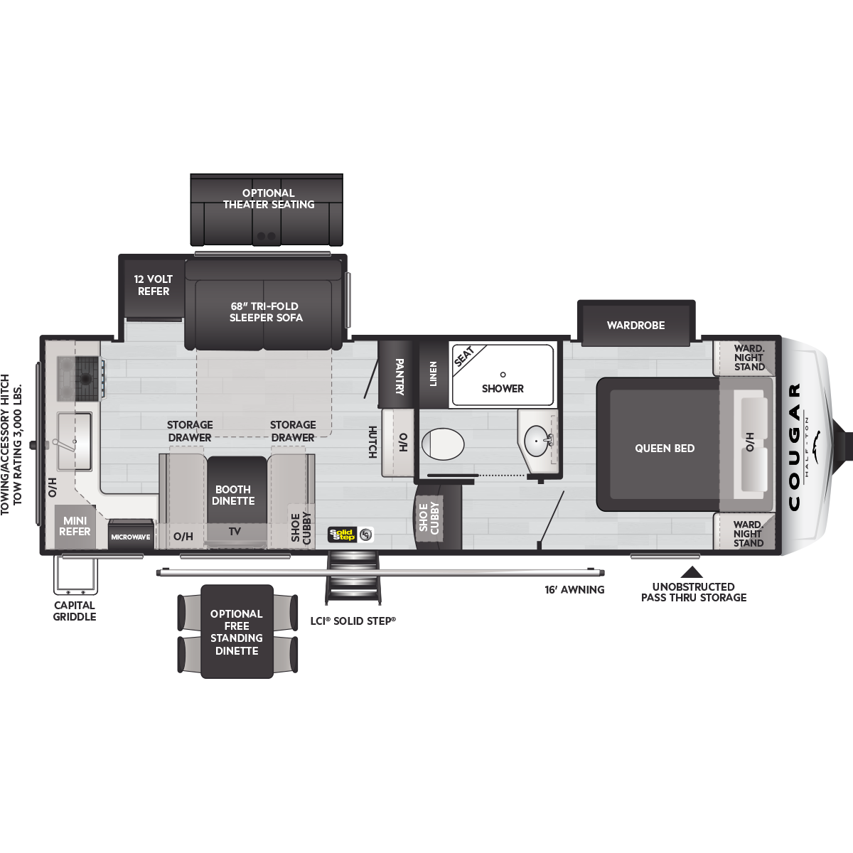Come to Keystone RV Booth 2 with Camping World to see all of these floorplans! Step into the legacy of RVing with the iconic Keystone Cougar. Our collection invites you to join generations of campers who have trusted Cougar as their choice for extraordinary journeys. With a range that includes fifth wheels, half-ton fifth wheels, and travel trailers, Cougar stands as a leader in the industry, embodying not just a brand, but a tradition of innovation, style, and unforgettable experiences.
