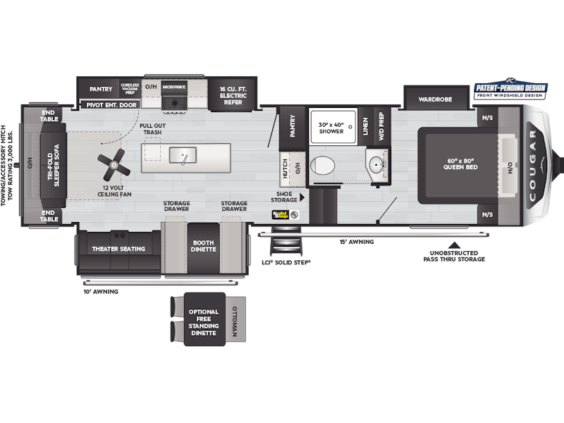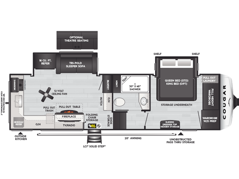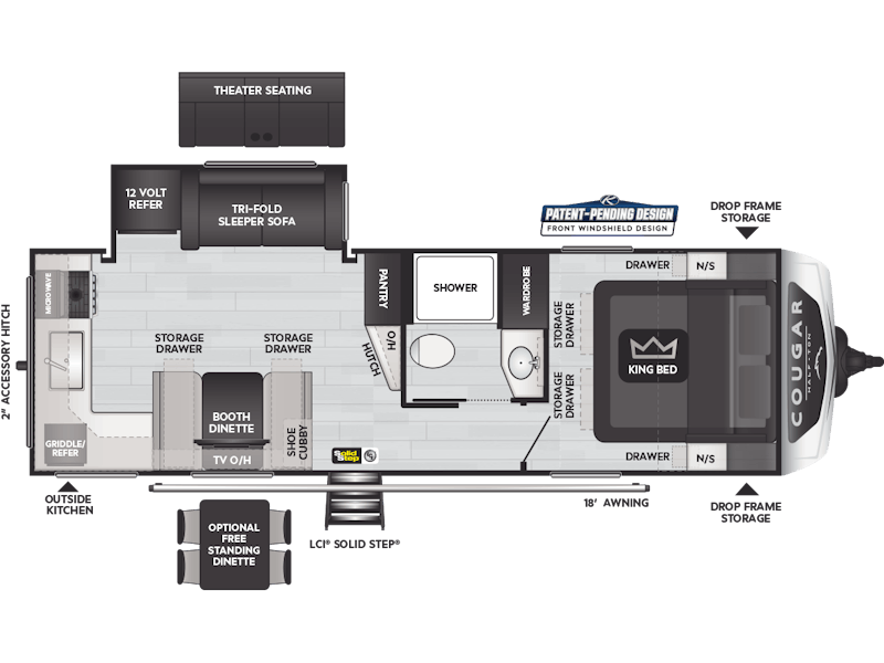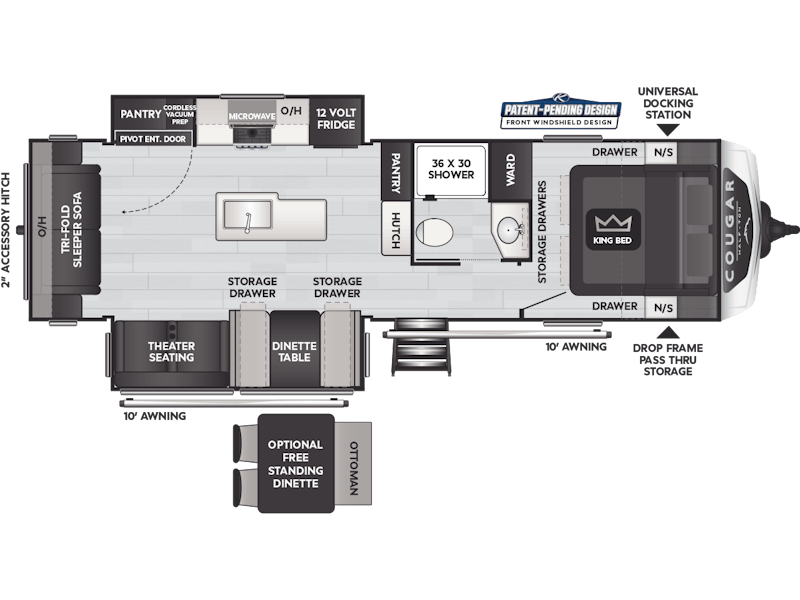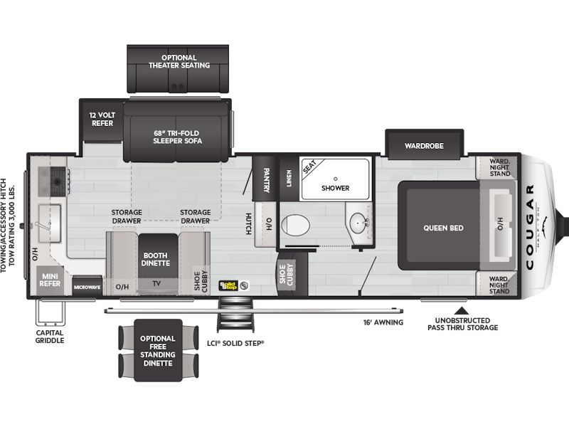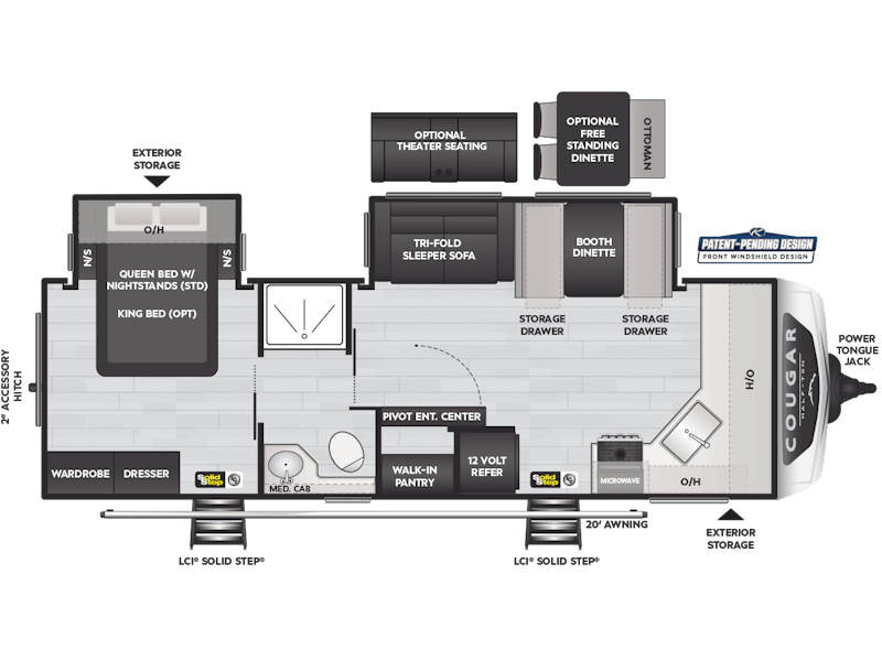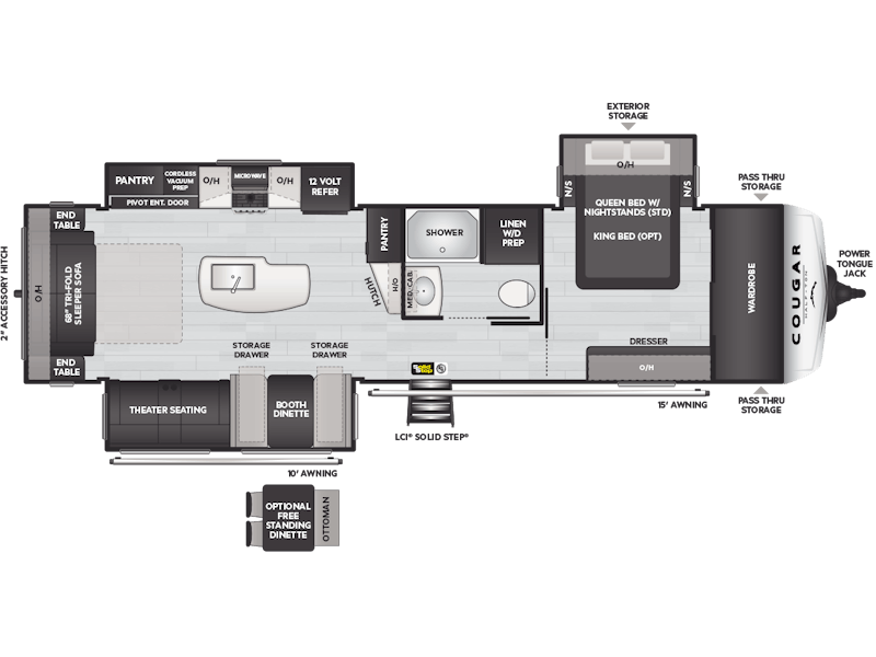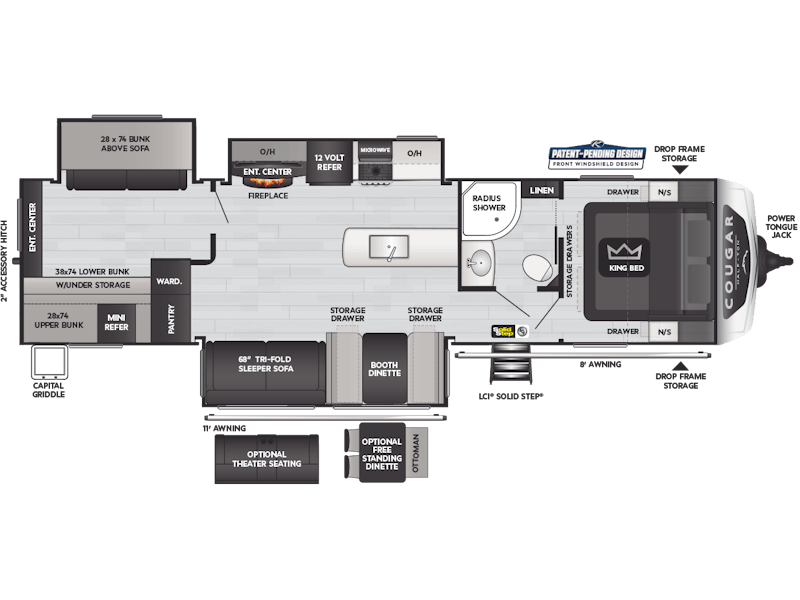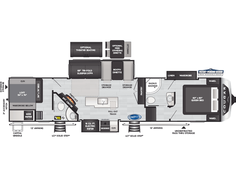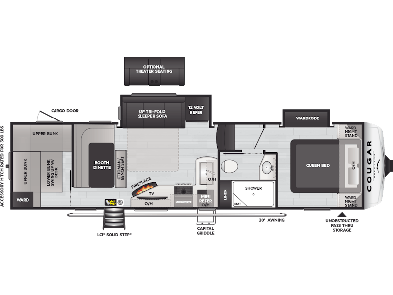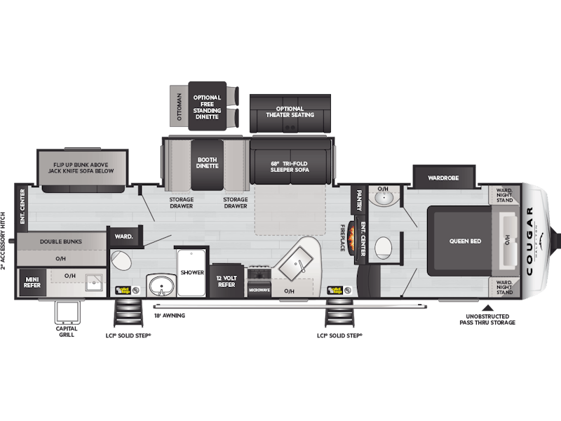 Come to Keystone RV Booth 2 with Camping World to see all of these floorplans! Step into the legacy of RVing with the iconic Keystone Cougar. Our collection invites you to join generations of campers who have trusted Cougar as their choice for extraordinary journeys. With a range that includes fifth wheels, half-ton fifth wheels, and travel trailers, Cougar stands as a leader in the industry, embodying not just a brand, but a tradition of innovation, style, and unforgettable experiences.