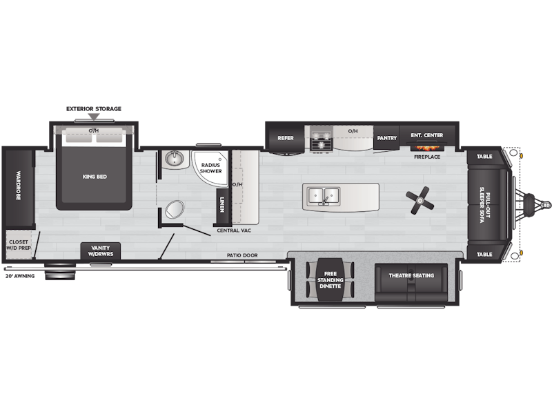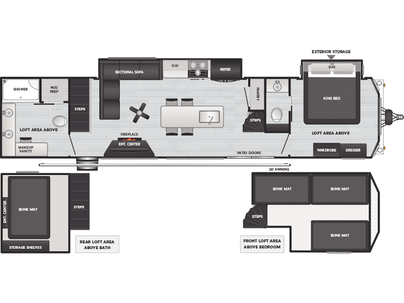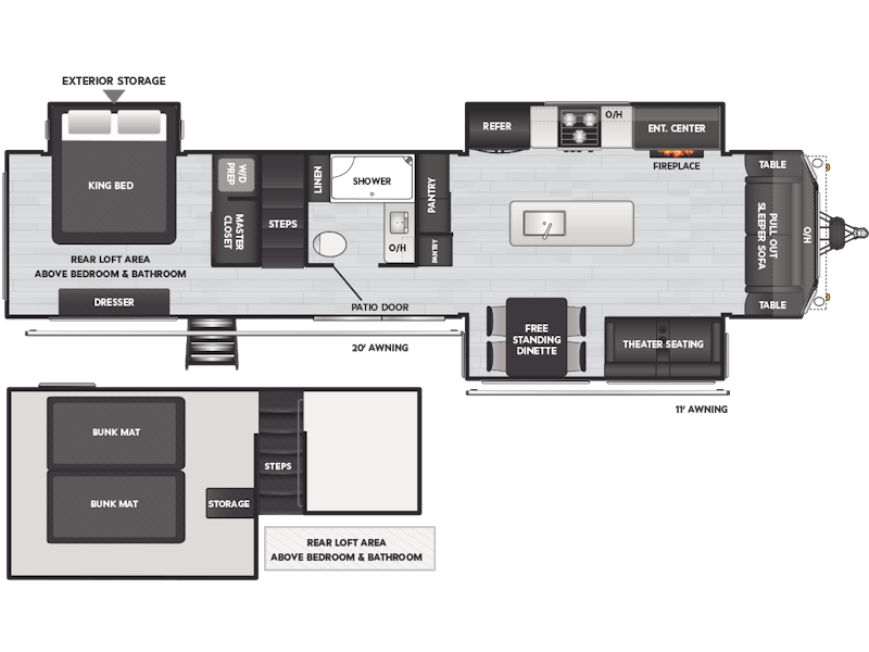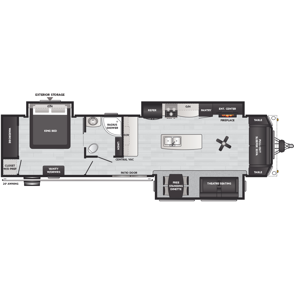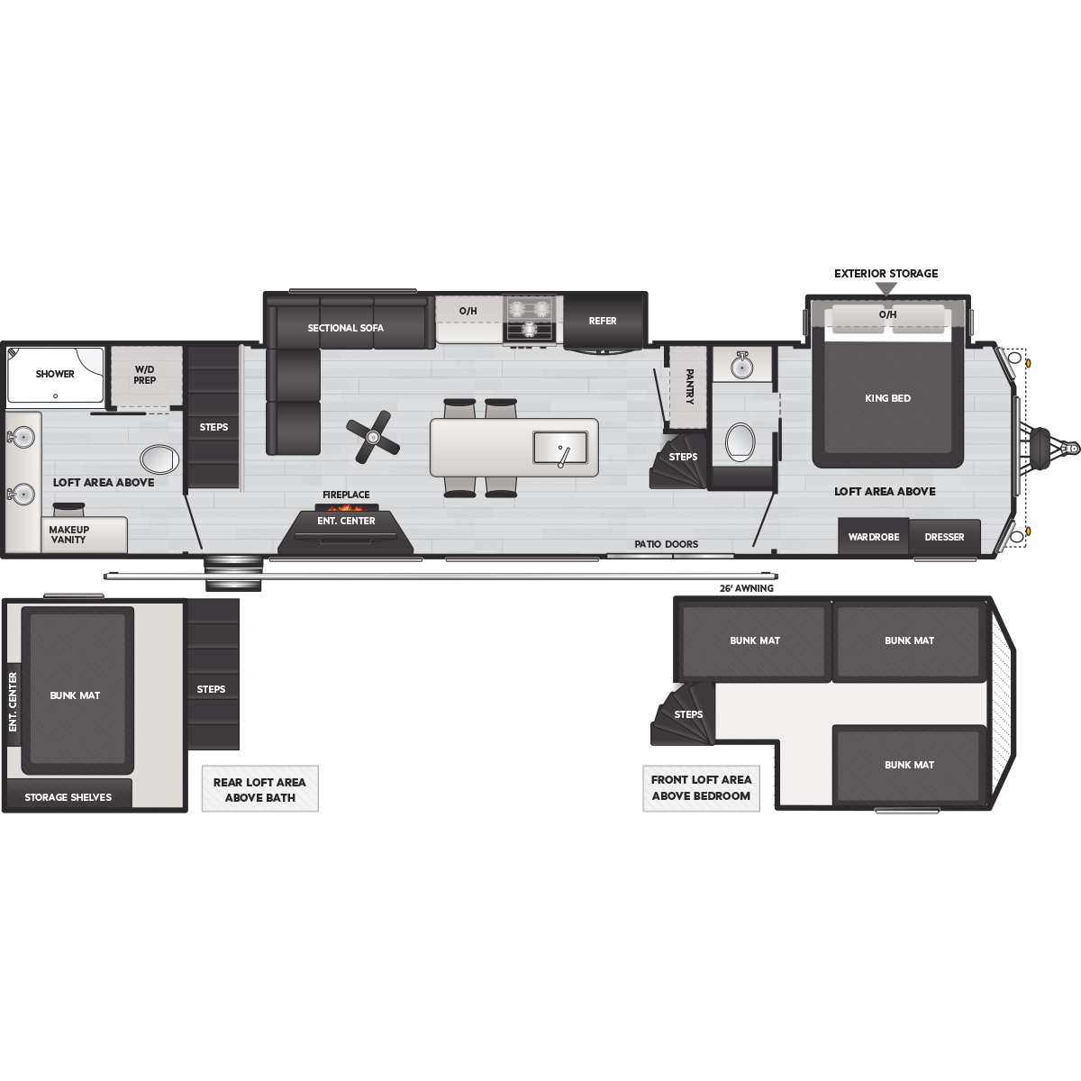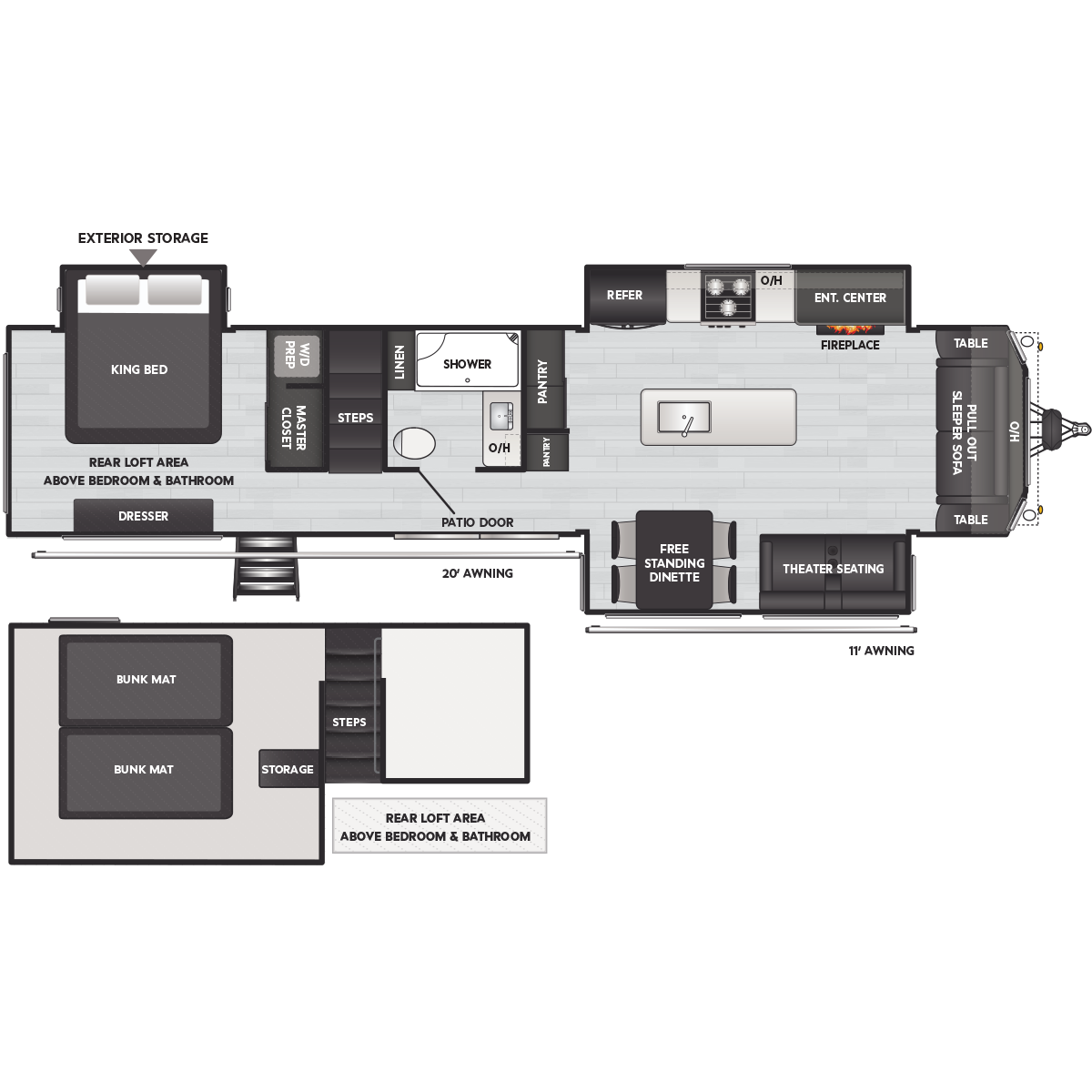 Come to Keystone RV Booth 1 with Optimum RV to see all of these floorplans! Retreat destination models are specifically designed for seasonal RVing, whether that means escaping to a warmer climate in the winter or slipping away to the lake in the summer. Explore Keystone Retreat models to find the perfect getaway.